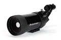 [4000419779327]Product DescriptionThe Maksutov optical design is recognized for being a portable design that is easy to use and has a variety of applications, making it an excellent choice for both terrestrial and astronomical usage. This C90 Mak has excellent optics with razor sharp images over a wide field.Celestrons 52268 90mm Maksutov Spotting Scope delivers excellent high power optics in a compact, affordable package. The 52268 package includes a backpack style soft carrying case, an 8x21 erect image finder scope, a 1.25 inch size correct image 45* prism diagonal, and a fully coated 32mm plossl eyepiece for a magnification of 39X.The Maksutov-Cassegrain design of the C90 uses a combination of mirrors and lenses; this folded optical system has a focal length of 1250mm in a body only twelve inches long. The Maksutov design delivers high power views without a trace of the chromatic aberration, also called blue fringing, that can distort high power views in competing refractor style spotting scopes. At 40X magnification where some low cost spotting scopes start to seem fuzzy, the C90 is just getting started. The C90 uses the same 1.25 inch eyepieces used in astronomical telescopes. The standard equipment 32mm plossl eyepiece yields a magnification of 39X, but many other eyepieces can be used to vary the magnification.The Celestron model 52268 seems very well built, with excellent multi-coatings visible on the front lens. The real beauty of this 90mm Maksutov spotting scope, however, is in the view it offers. When I use an optional 12.5mm eyepiece to look at Jupiter at 100X I can clearly see Jupiters major cloud bands as well as its four moons. When I look at the Moon and stars I can easily push the magnification to 200X with an optional 6mm eyepiece. When I look at birds in the backyard, Im treated to delightful views full of vibrant color and crisp detail. With a close focus distance of only 15 feet, the detail and texture I see is simply amazing.High magnification viewing requires a solid tripod, of course. Celestrons Heavy Duty Altazimuth Tripod comes with slow motion controls to allow the scope to be pointed precisely, and I can clamp the dovetail base on my CG5 mount for astronomical use. The other drawback to high magnification viewing is a narrow field of view; high magnification makes it hard to follow moving targets like birds in flight. Overall the Celestron C90 Maksutov Spotting Scope does a fine job as a companion to good pair of binoculars. The C90 also doubles as a portable astronomy scope; it wont show the flag on the Moon but it will show thousands of craters on the Moon as well as showing the moons of Jupiter and the rings of Saturn. --Jeff Phillips