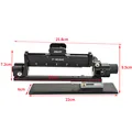 [4000430704314]-New jig from Decut Archery enables the archer to fletch both compound and recurve arrows. -Has micro adjustable guides for precise alignment of your fletching with your arrow shaft. -You can off set the jig to make your fletches helical. -Features clear easy to read measurements. -Both 3 vanes and 4 vanes can be attached with ease. -Made of all aluminum, surface anodized laser engraving. -The jig is free-standing so can be used anywhere and has a collapsible base for easy storage. -Classic adjustment method and unique simple retractable structure. -No need to disassemble, through the collection method reduce the size and make it easy to carry.