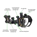 [4000033178723]-Adjust brightness to suit any Shooting Condition with the rheostat light -Heightened accuracy over longer distances with second-axis adjustment. -Dependable precision with micro-adjustable pins -Ultimate visibility with ultra-bright -5 pins/7 Pins - .019 fiber optic pins. Stack tight pins, built-in sight level -Pin adjustment tool stores on sight.